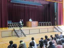 最後に、代表児童3名による新学年への希望や抱負の発表がありました。全校児童を前にとても緊張したと思いますが、自分の考えを堂々とした態度で伝えてくれました。聞いている全校児童も、自分の希望や抱負を思い浮かべながら、話している人の方をしっかり見ながら聞いていました。